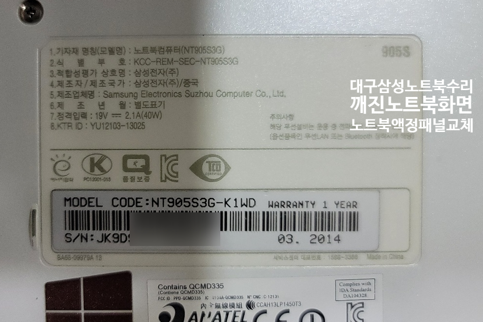 오늘 소개해드릴 사례는 삼성전자 NT905S3G-K1WD 노트북